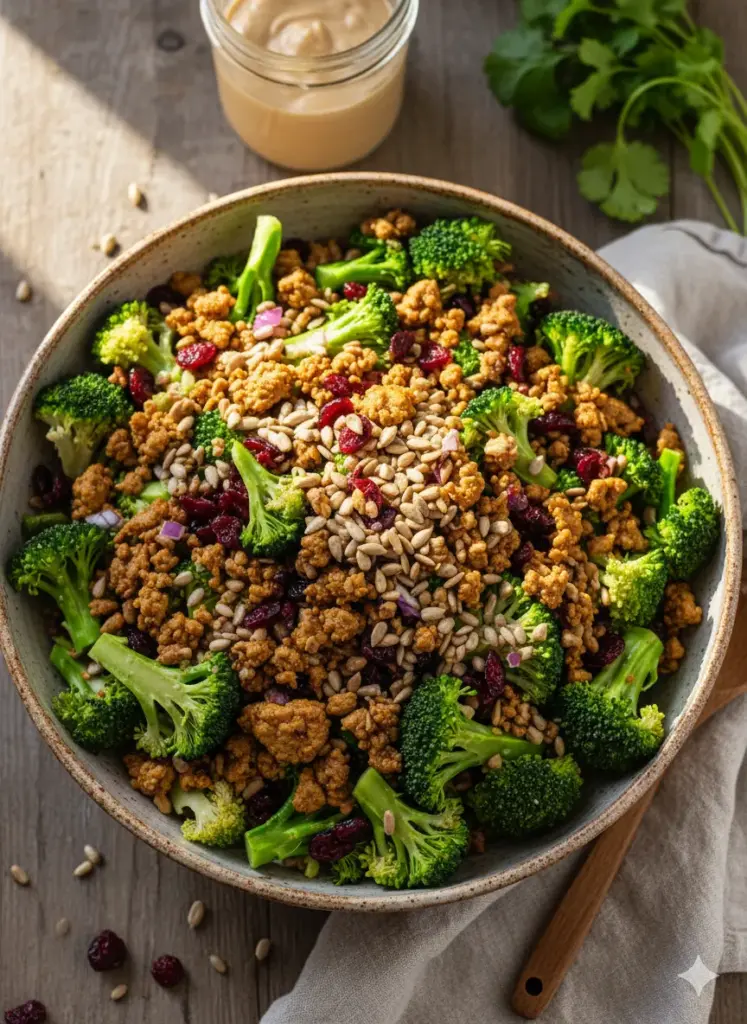 The secret? It’s not just the broccoli. It’s the combination of savory seasoned ground beef, tart-sweet cranberries, crunchy sunflower seeds, and a creamy dressing that somehow makes every bite feel indulgent without being heavy. This is the kind of side dish that disappears from the table before anyone notices, and then people ask for the recipe while they’re still chewing.