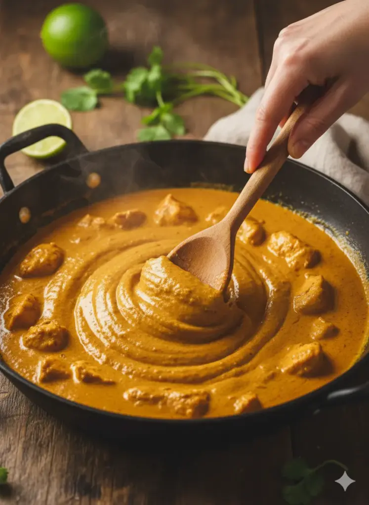5. Simmer: Let the curry simmer uncovered for 15-20 minutes, stirring occasionally, until the sauce thickens and the chicken is cooked through. If it gets too thick, add a splash more broth.