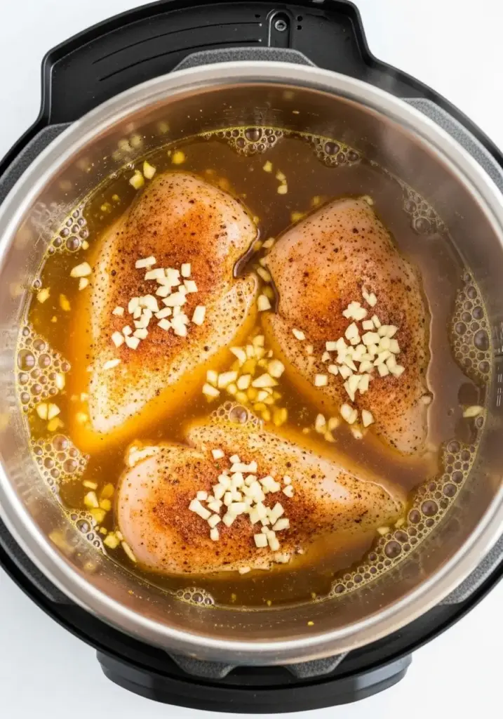 - Add chicken: Place seasoned chicken breasts into the Instant Pot. They can overlap slightly.