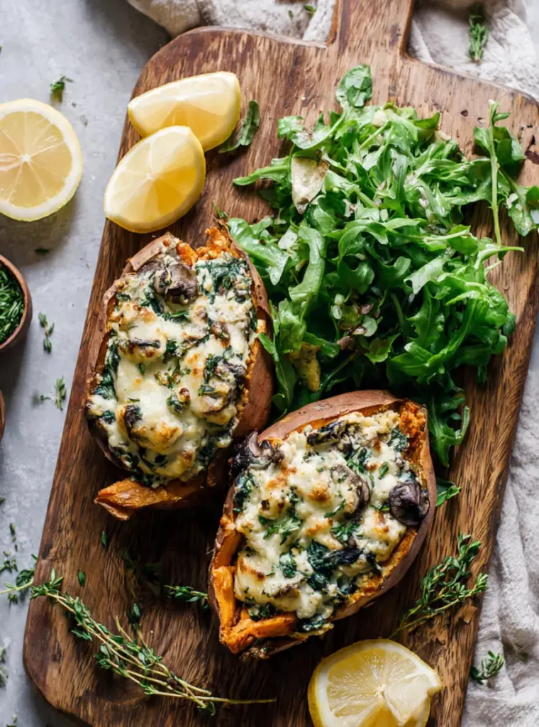 Creamy Mushroom & Spinach Stuffed Sweet Potatoes Recipe