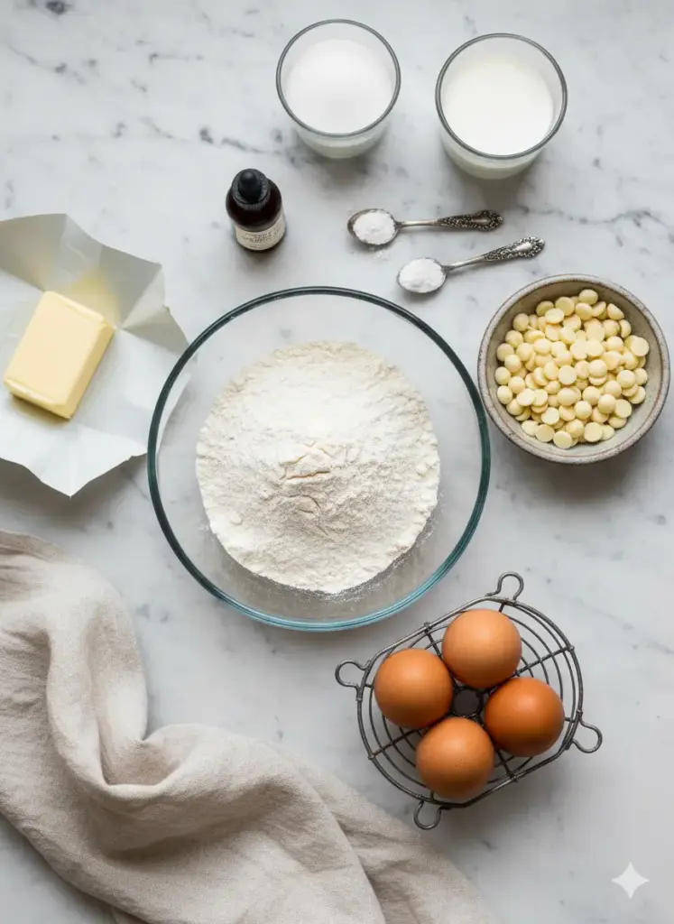 White chocolate is having a moment, and honestly, it deserves it. When you fold melted white chocolate into the batter, it creates this incredibly tender crumb that stays moist for days. (Not that it’ll last that long in your house, trust me.)